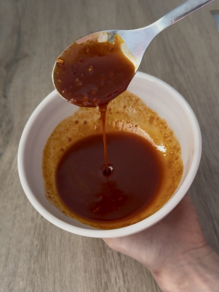 - Por último, añade una o dos cucharadas de salsa. *Te recomiendo primero añadir una y probar, ya que es una salsa fuerte. Después siempre puedes añadir más.