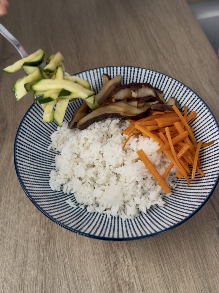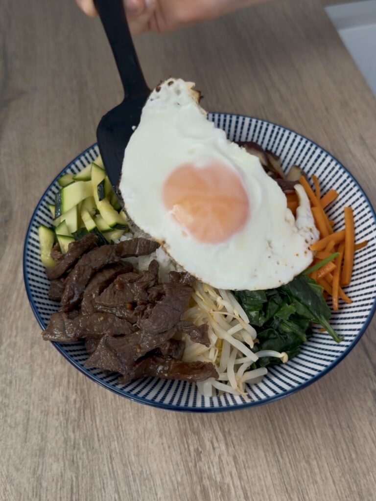 Sin duda, mi parte favorita es mezclarlo todo a la hora de comerlo, sobre todo con el huevo, que al romperse se convierte en una salsita deliciosa y que mezclada con la propia salsa del Bibimbap, es una bomba. Cada bocado es distinto, y siempre sorprende.