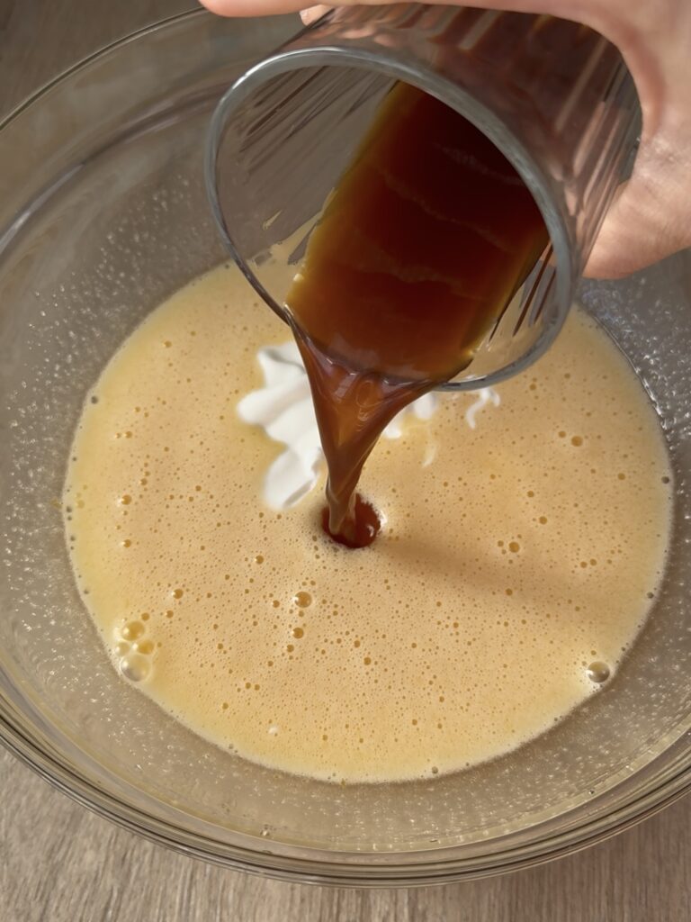 Añade el yogur, la leche y el café y vuelve a mezclar.