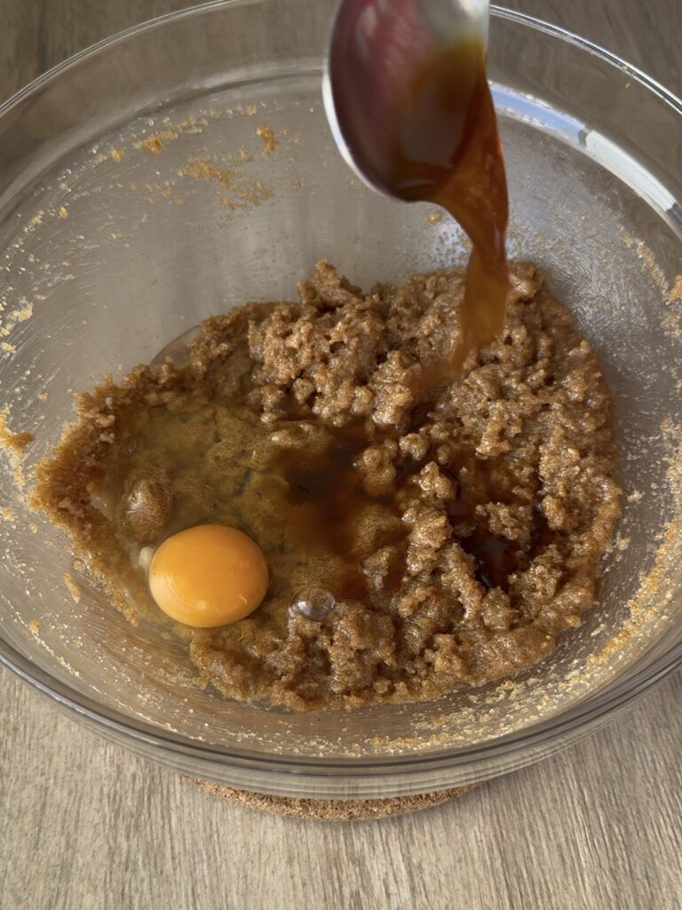 Añade el huevo, la vainilla, y el café. Integra bien con la varilla.