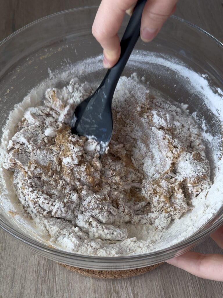 Añade la mezcla de harina e integra con una espátula.