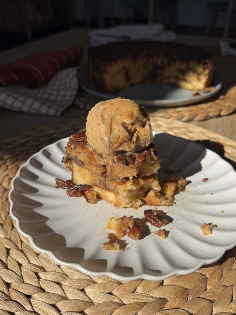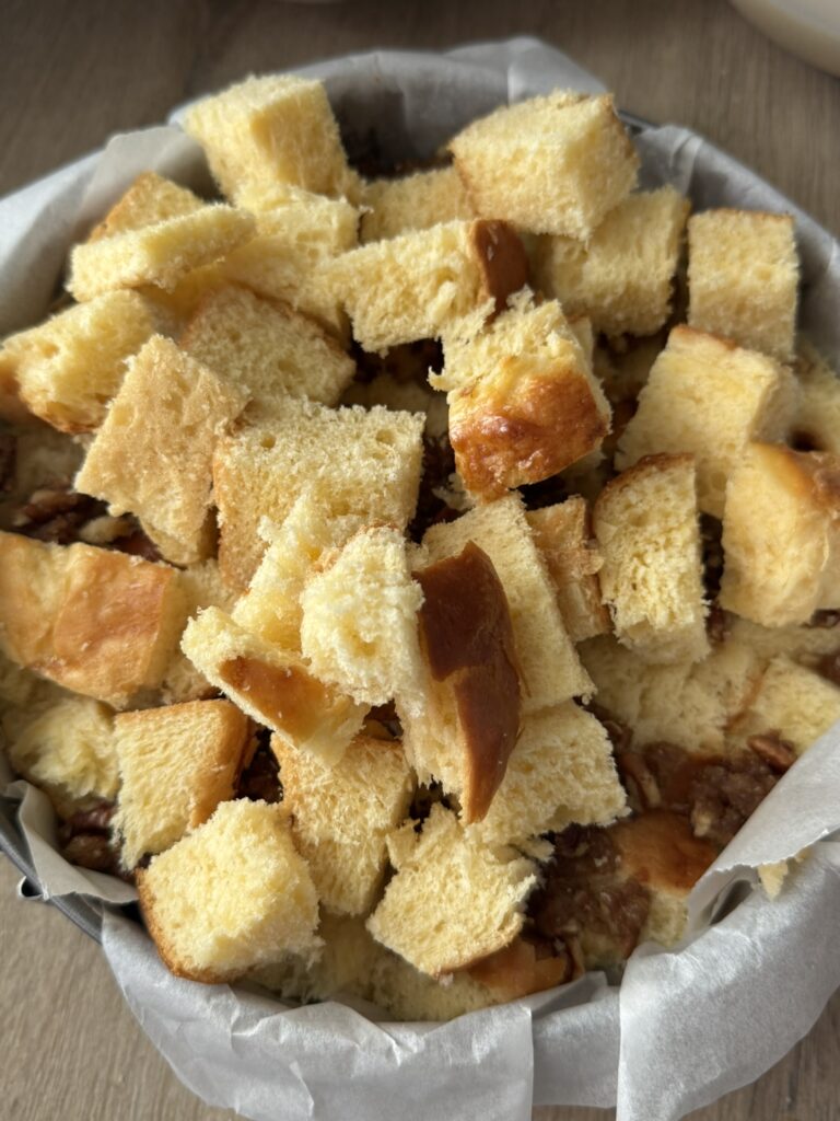 El pudding de pan es muy versátil porque con la misma base, lo puedes versionar con los ingredientes que más te gusten. Pero te aseguro que esta versión con nueces pecanas es una locura