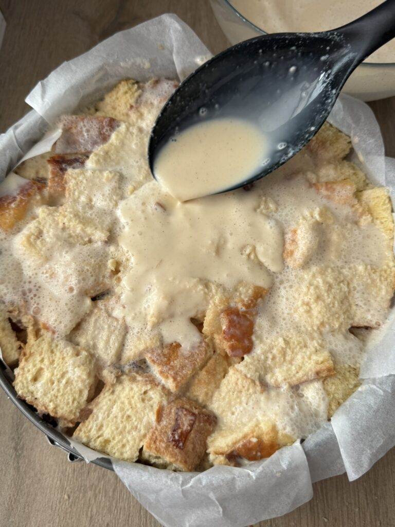 2. Hornea el pudding durante 50-55 minutos, hasta que esté doradito. Si ves que se tuesta demasiado, puedes cubrirlo con papel de aluminio.