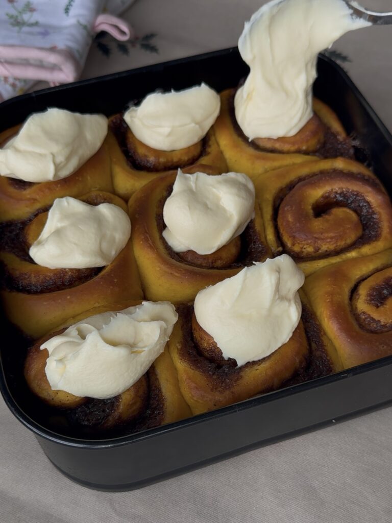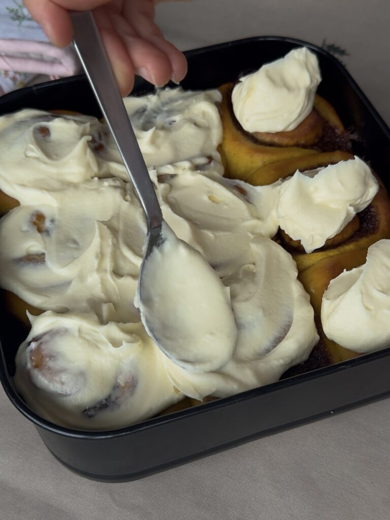 Los rollitos de canela como mejor están es recién horneados, ya que todavía están calentitos y con el frosting un poco fundido… están de muerte.