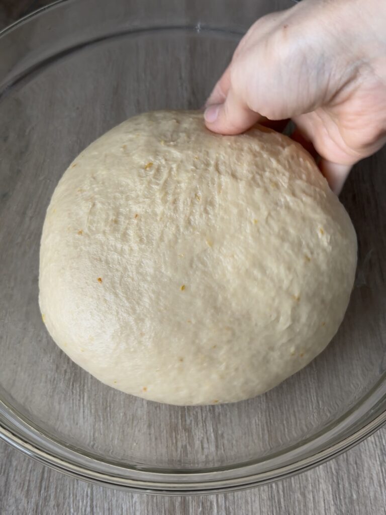 Cuando tengas la bola de masa, ponla en un bol engrasado y tápala con un film y un trapo de cocina. Deja reposar entre 1h 30 y 2 horas, hasta que doble su tamaño.