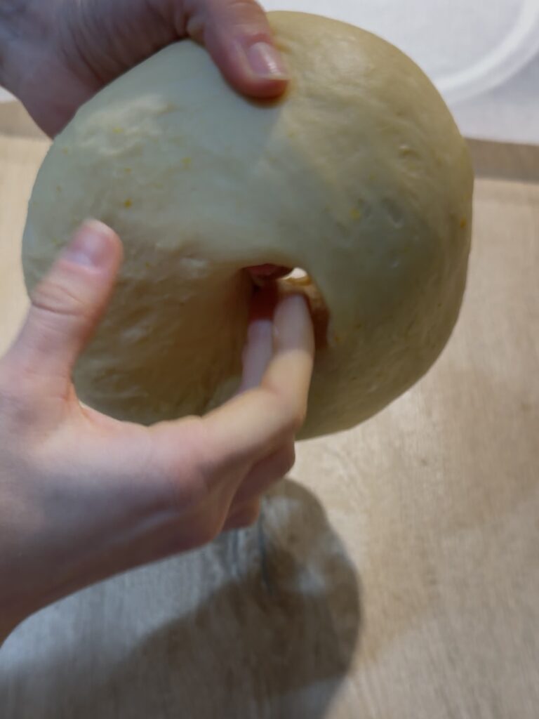 Con un dedo marca el centro y empieza a abrir el hueco, rotando y estirando la masa con las manos, agarrándolo del hueco.