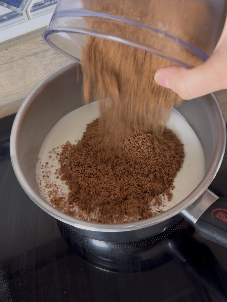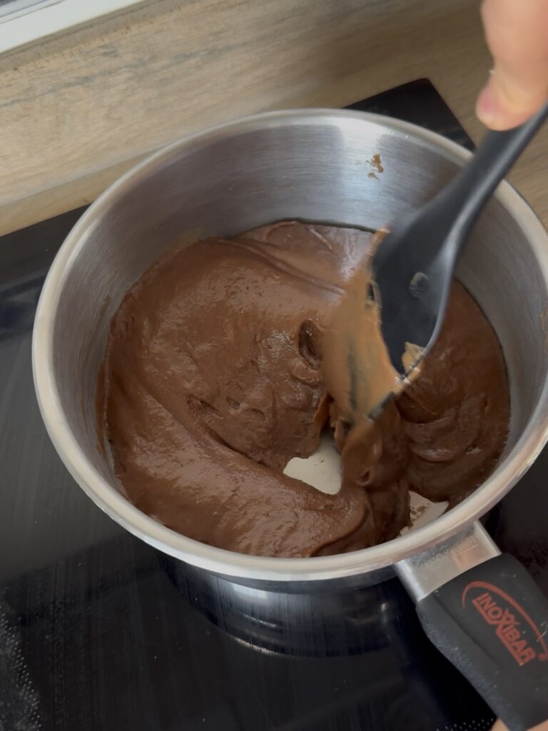 - En un cazo a fuego medio, calienta la nata junto con las galletas trituradas y remueve hasta que estén integradas y se haya formado una crema espesa. Deja enfriarla un rato.