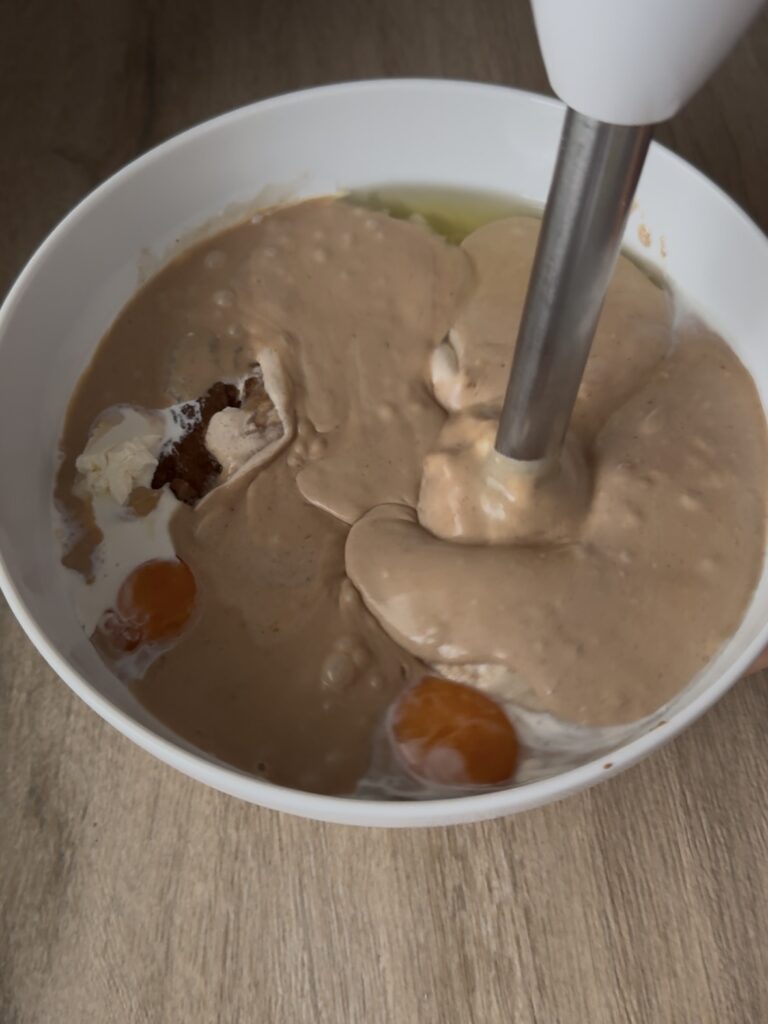 Bate toda la mezcla con una batidora de mano, o bien en un robot de cocina, hasta que quede homogénea.
