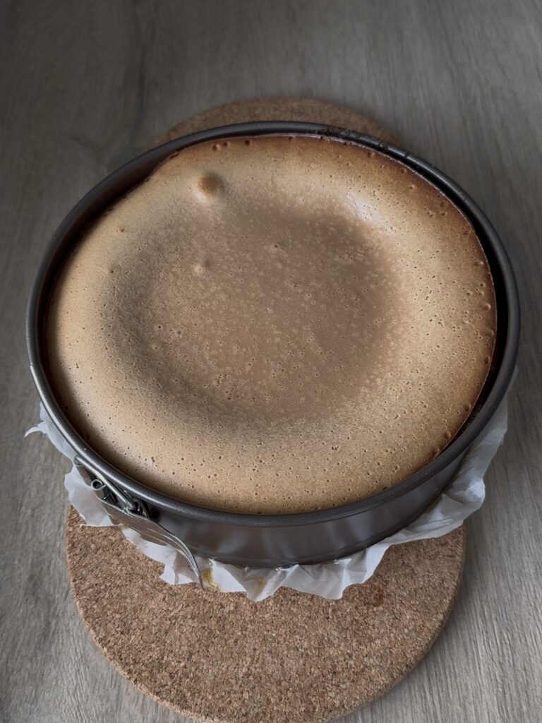 NOTA: la tarta bailará mucho al salir del horno y parecerá que no está cocinada… pero confía en el proceso.