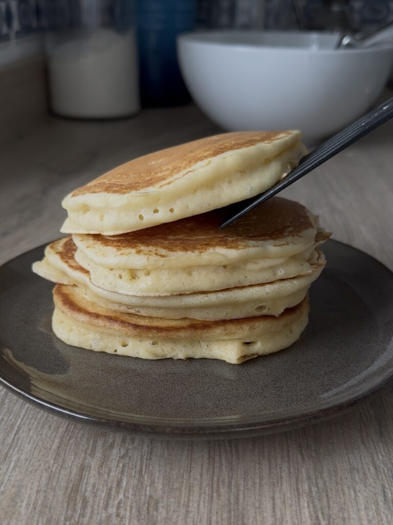 Y es que con esta receta y el truquito que te voy a contar te van a quedar súper esponjosas y gorditas, como las auténticas tortitas americanas